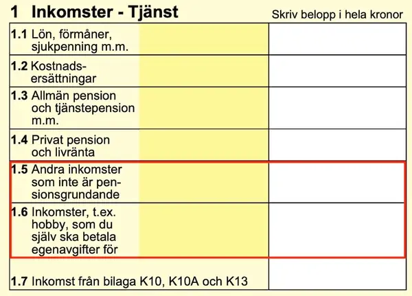 Inkomster, t ex hobby, som du själv skall betala egenavgifter för